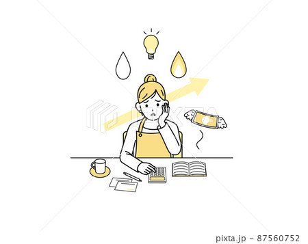 光熱費の値上がりに悩む主婦 家計簿 料金 出費 困る 女性