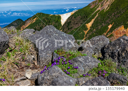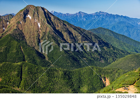 八ヶ岳連峰・硫黄岳稜線から見る赤岩ノ頭と残雪の槍・穂高連峰