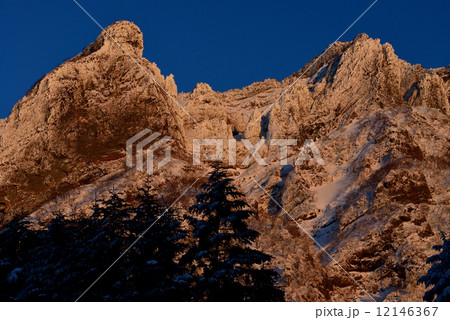 夜明けの赤岳鉱泉から見る八ヶ岳・阿弥陀岳