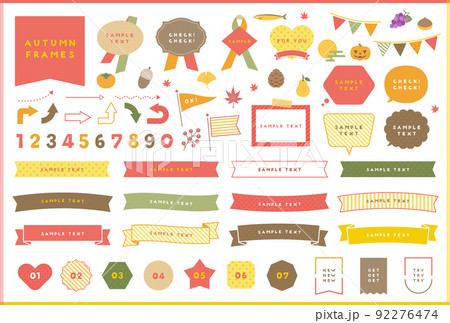 秋のイラストアイコンとフレーム、リボンのデザインセット