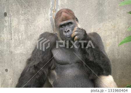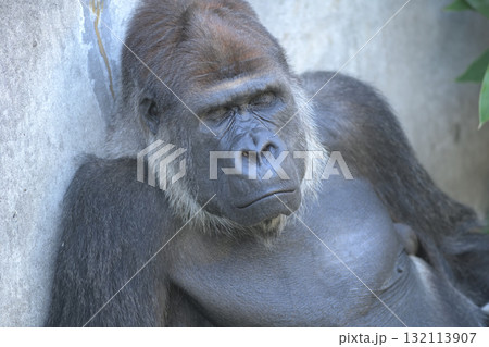 睡眠不足なのか気掛かりなことがあるのか目の赤いゴリラ