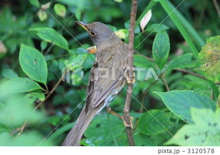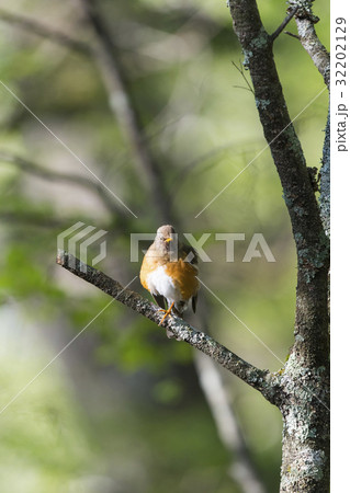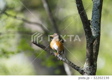 初夏、木の枝にとまる高原の人懐っこい鳥、アカハラ
