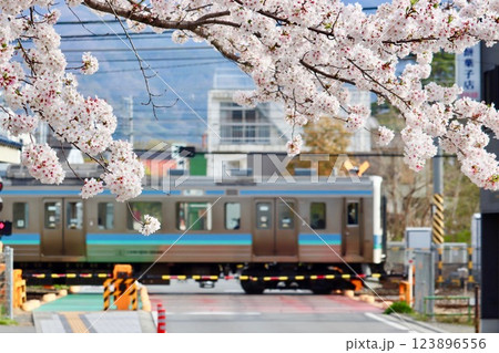 満開の桜と電車・1