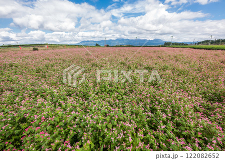 自然 植物 ソバ、赤花の品種です。赤い絨毯を敷いたような見事な色の蕎麦畑
