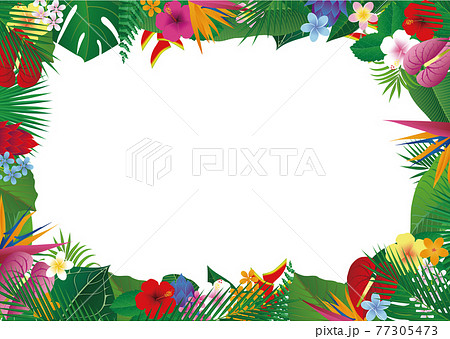 熱帯植物の葉と花のフレーム ベクターイラスト