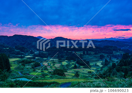 (新潟県)稲穂実る星峠の棚田 朝焼け