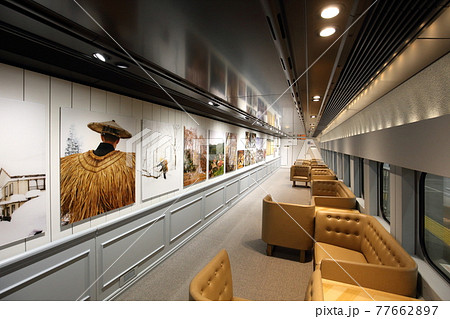 走る美術館!E3系700番台、現美新幹線の車内
