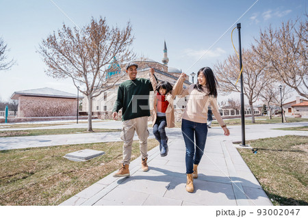 parent walking and playing with daughter while visiting turkey