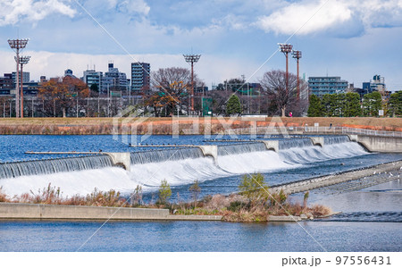 池田井堰のある猪名川の風景