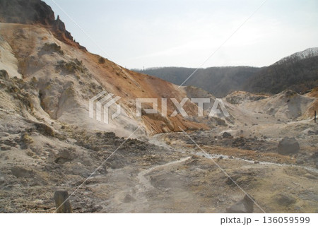 温泉地の荒涼とした風景が広がる