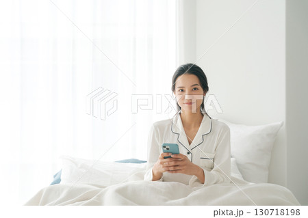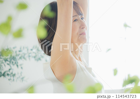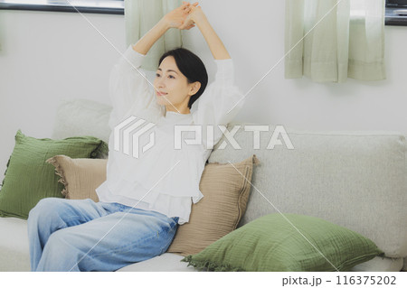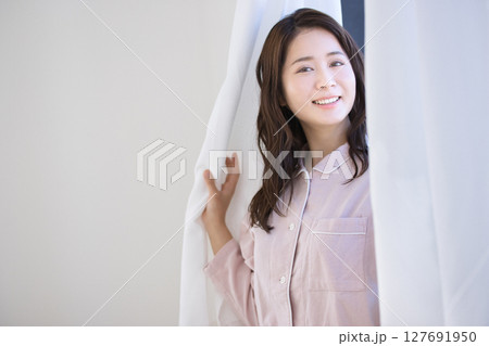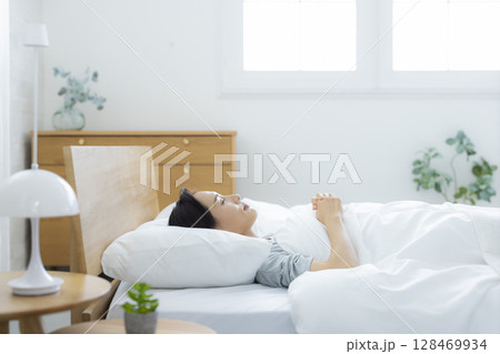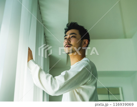 気持ちの良い朝を迎える若い男性 ライフスタイルイメージ
