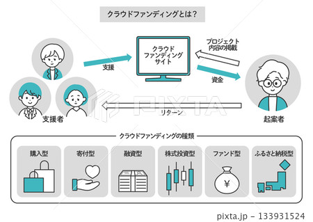 クラウドファンディングの流れと種類の図解セット