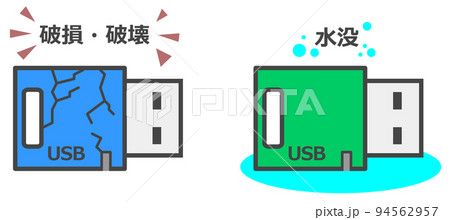 データを記録したUSBメモリが壊れたイラスト