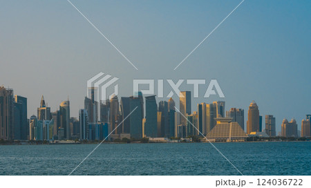 The skyline of the West Bay area from top in Doha timelapse, Qatar.