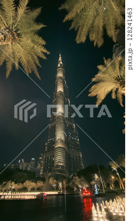 Burj Khalifa shines at night, creating a spectacular display in Dubais skyline