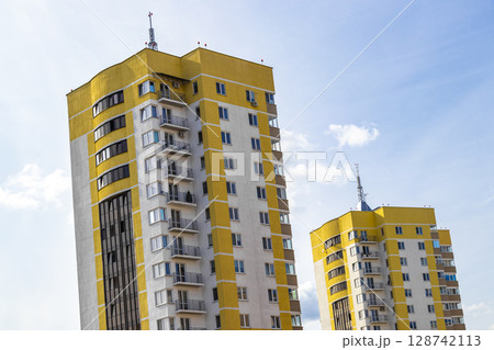 Colorful tall highrise buildings in the residential district Brest Belarus.