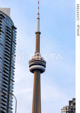 Iconic CN Tower rising above Toronto cityscape