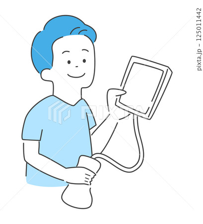 ポータブルのエコーを持つ男性のイラスト ベクター