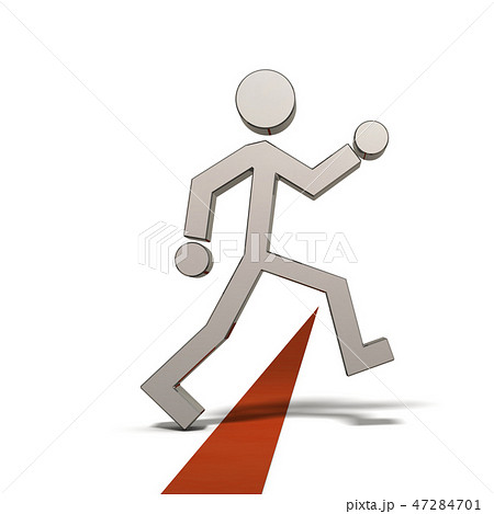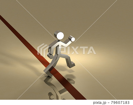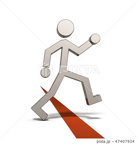 スタートラインを越えて初めの一歩を踏み出す人物。3Dレンダリング。