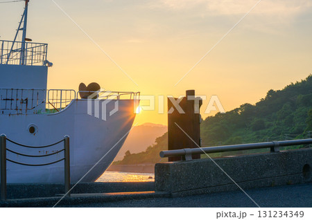 【道の駅・マリンドリーム能生】越山丸と日の出【糸魚川市】
