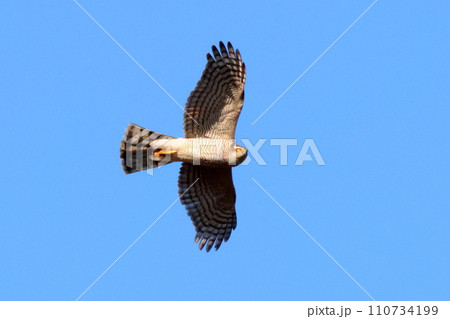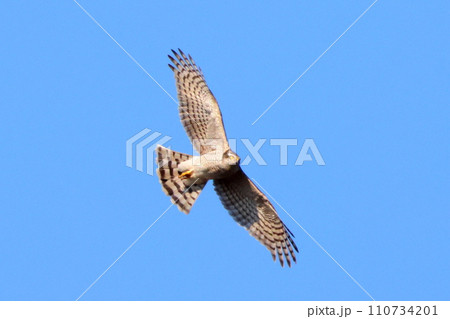 埼玉県比企郡川島町越辺川の白鳥飛来地 青空の上空を舞う、かつてははしたかと呼ばれたタカ科のハイタカ