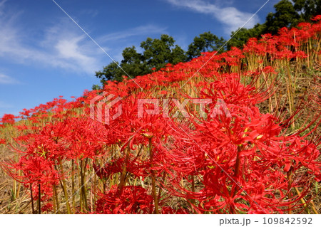 埼玉県比企郡川島町下伊草 越辺川土手一面を赤く染める曼珠沙華(彼岸花)群生