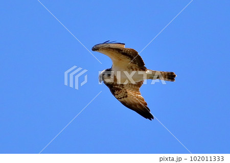 埼玉県比企郡川島町越辺川の白鳥飛来地 青空の上空を舞うタカ目のミサゴ、別名ウオタカ