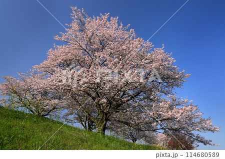 埼玉県川越市山田 入間川岸の山田桜堤の満開のソメイヨシノ並木