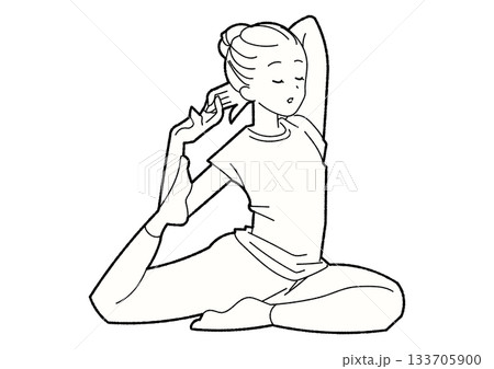 ヨガで後屈ポーズをとる女性 線画 目を閉じる