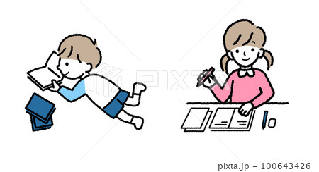 勉強する女の子 本を読む男の子