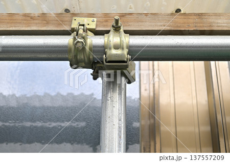 単管パイプの接合部とクランプ(48.6mm規格)のアップ
