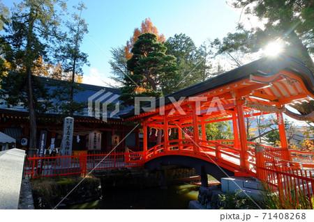 長野県上田市 式内大社 生島足島神社の御本社(上宮)と御神橋