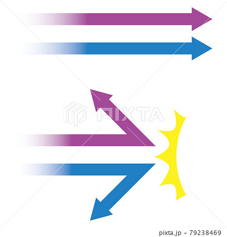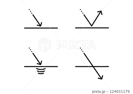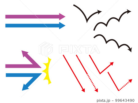 反射や貫通など様々な効果を見せる矢印の線画イラスト
