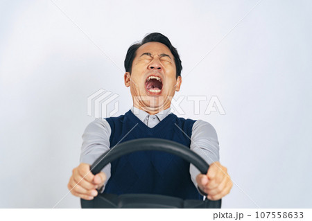 自動車事故を起こしそうになってパニックになっている高齢男性