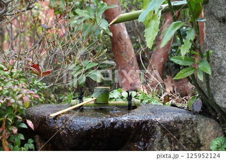 和・和風イメージ~手水鉢と柄杓~