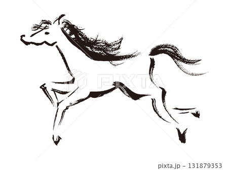 年賀状 デザイン用 走る馬の手書き和風筆イラスト
