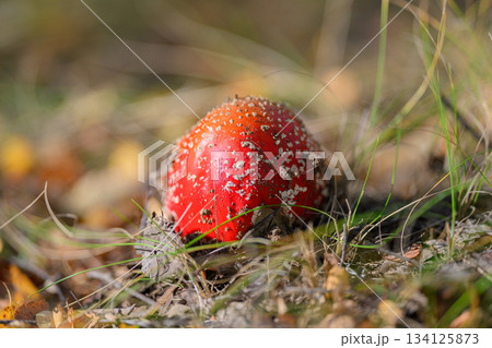 Vibrant Red Mushroom Thriving in Its Natural Habitat, Showcasing Stunning Colors and Details