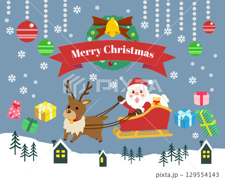 サンタとトナカイが聖夜にプレゼントを届けに行く