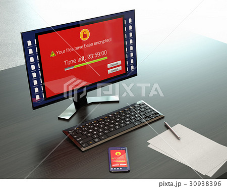 ランサムウェア被害を受けたデスクトップPC、スマートフォン画面のイメージ