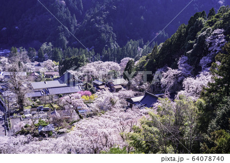 (山梨県)身延山・ロープウェイから見る、桜に包まれた久遠寺