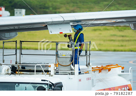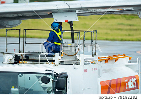 沖縄県 石垣市 石垣島 新石垣空港 空港 飛行機 離陸 午前 昼 明るい 給油 ジェット燃料