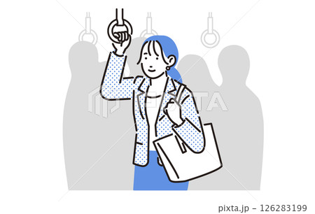 つり革につかまってスマホを見るビジネスパーソンのイラスト素材