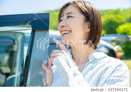 ドライブ旅行中の女性