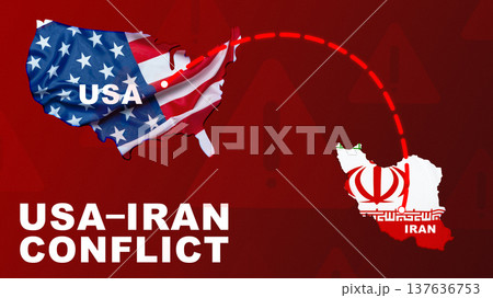Conflict between Iran and USA represented by broken flags depicting tensions and disagreements