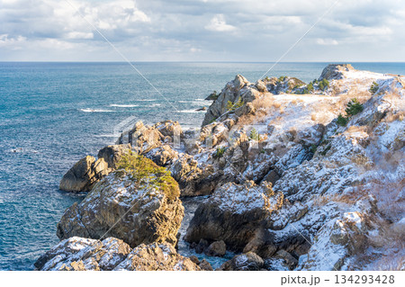 「青森県」葦毛崎展望台から眺める雪景色の種差海岸 八戸市