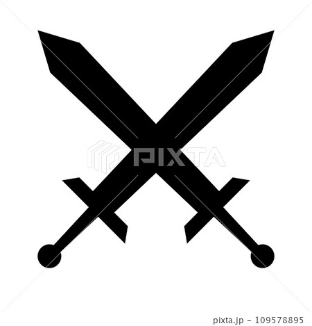バトルのシルエットアイコン。交差する剣のシルエットアイコン。ベクター。
