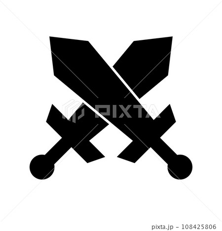 バトルのシルエットアイコン。交差する剣のシルエットアイコン。ベクター。