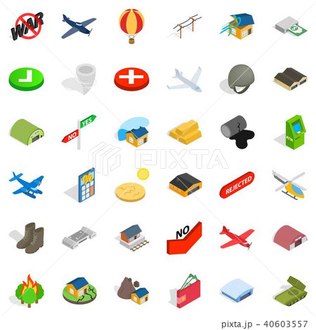 Military field icons set, isometric style