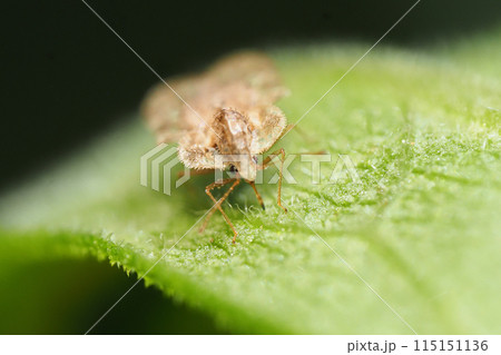 生き物 昆虫 ヒメグンバイ、翼状に張り出した肩の突起と頭をひさしのように覆う帽状部