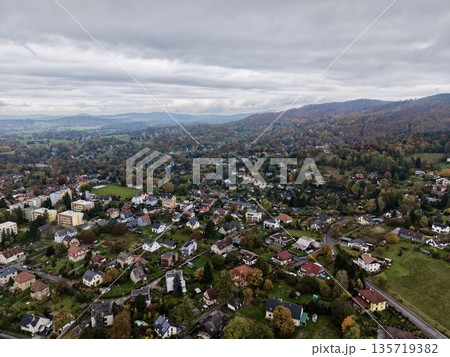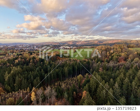breathtaking aerial depiction emphasizing transition of seasons through vibrant leaves and rich landscapes